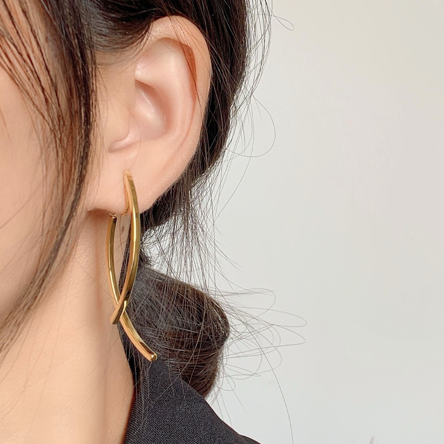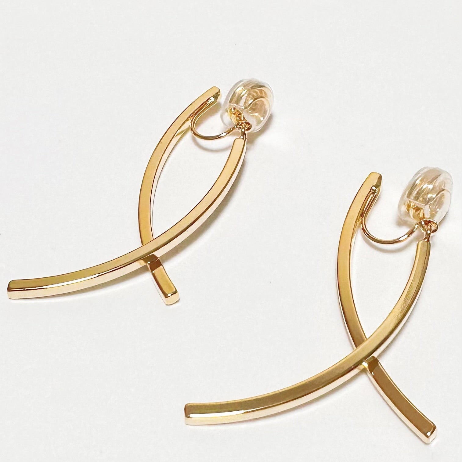 Curved Cross Drop Earrings (Clip-On)